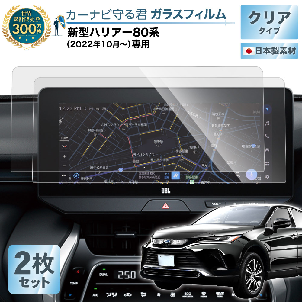 | セット内容 | ・硬度9H カーナビ用 ガラスフィルム クリア タイプ ・新型 ハリアー 80系 (2022年10月〜) 専用 用 2枚 ・貼付けキット ・ウェットワイプ ・クリーニングクロス ・ホコリ除去シール ・固定用シール |