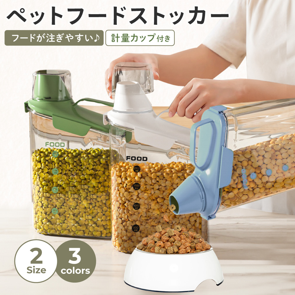 ペットフードストッカー フードストッカー ペット 猫用 犬用 フード 大容量 透明 保存ケース 計量カップ付き 目盛り付き ドライフードストッカー 酸化防止 湿気防止 ハンドル付き フード入れ 餌入れ 計量 保存 容器 おしゃれ ドライフード