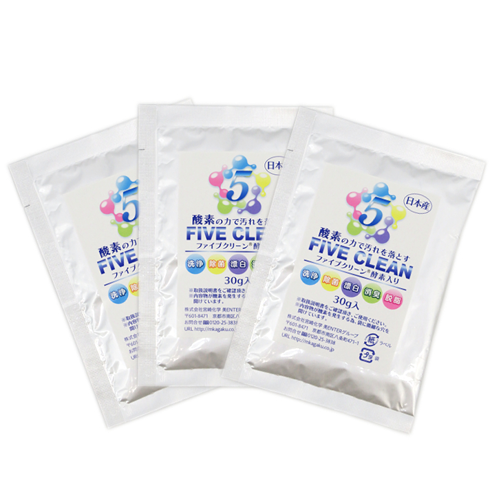 ファイブクリーン 30g入×3 弱アルカリ性洗剤 除菌 酸素系洗剤 酵素洗剤 漂白剤 お試し 携帯用洗剤 アウトドア 日本製爆買