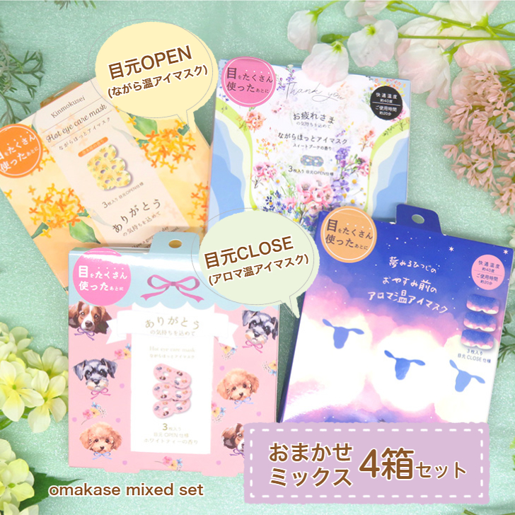 アロマ温アイマスク(目元CLOSE仕様) ・ながら温アイマスク(目元OPEN仕様) 【おまかせミックス 3P×4箱セット】 ほんやら堂 アイケア ほっとアイマスク