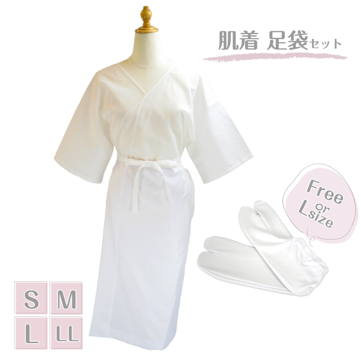 【和装肌着(S/M/L/LL)+足袋(フリー/L)セット】 通年用 着物スリップ きもの肌着 ワンピースタイプ 和装肌着 和装下着 ストレッチ足袋 コハゼなし 白