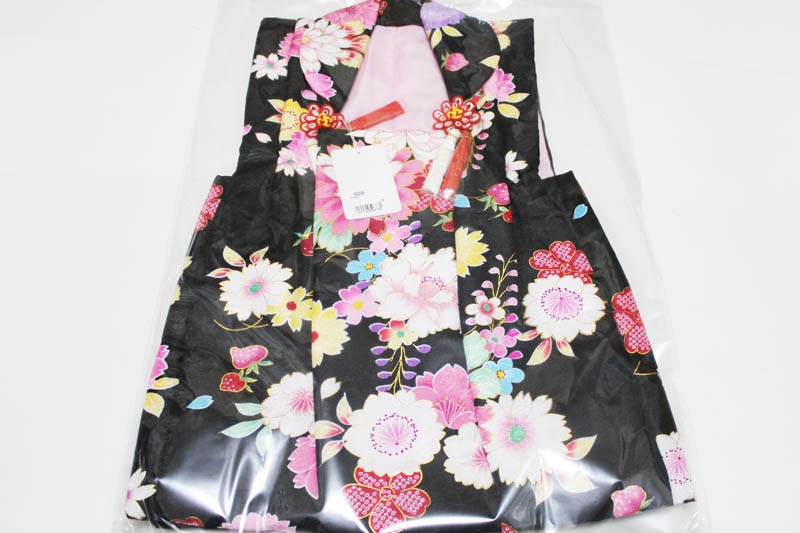 少々難(染難)友禅柄・被布3歳祝い着単品-No.123(黒色/洗える素材・被布・七五三・三歳 被布単品 祝い着)【YP100P】