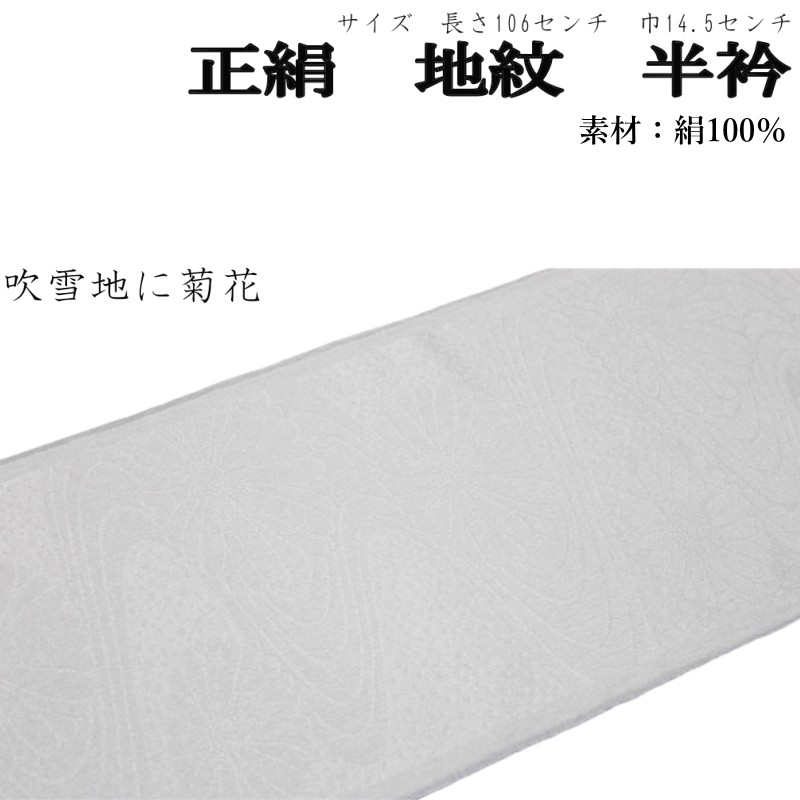 正絹 白色 半襟 半衿 吹雪地に菊花-8(絹100%/紋織/地模様入り)【YP20PゆうパケットOK】