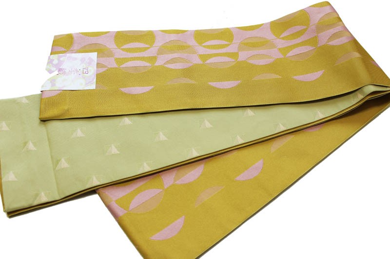 お洒落小袋帯-No.570(地色:黄色/半幅帯/織柄/リバーシブル)