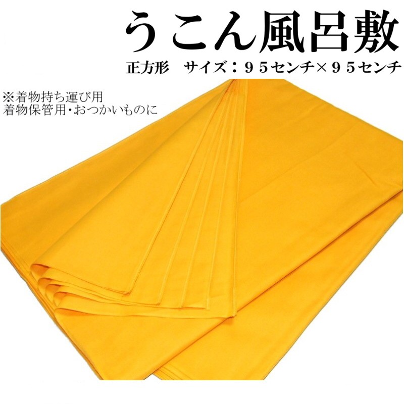 お買い得うこんの風呂敷のご紹介です。防虫と言えばうこん染め(化学染料併用) 保管用にも宜しいですし持ち運びにも便利で御座います。(水ぬれすると色が落ちます)素材は綿となります。サイズは95センチ×95センチ正方形の風呂敷となります。