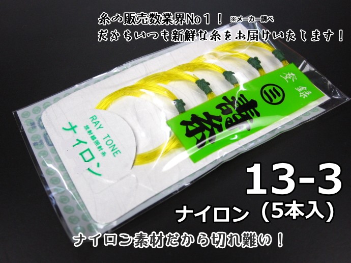 三味線糸 寿ナイロン糸13-3(5本入り)長唄/民謡/小唄/津軽 丸三ハシモト