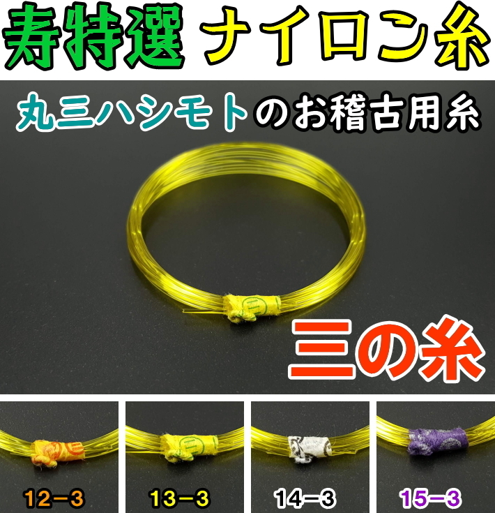袋入り(5本)の丸三寿ナイロン糸よりも質は劣りますが、丸三ハシモト社がお稽古用として価格を抑えて新たに作りました。