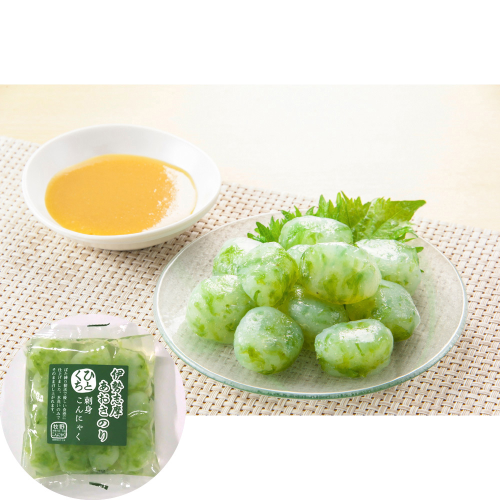 ■原材料:こんにゃく粉(国産)、あおさのり(三重県産)/水酸化カルシウム(こんにゃく用凝固剤)