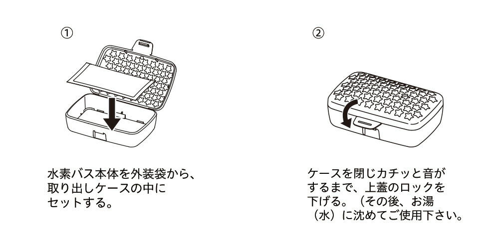 専用ケースに入れて水素を発生させる固形タイプの水素入浴剤です。