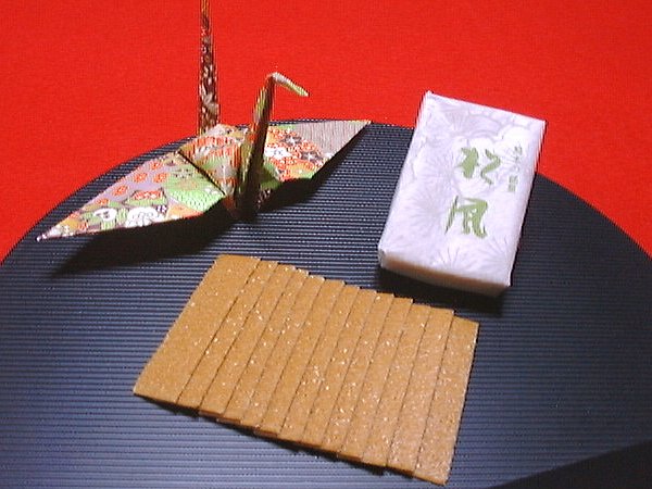 京都より伝わり長い歳月を経て改良が加えられ、現在の形になった菊池銘菓「松風」は、厚さ1.5mmの「日本一薄い和菓子」として全国に知られております。小麦粉、甜菜糖、地卵、ケシの実を使い焼き上げられ、短冊状に切り分けた「松風」は、香ばしく上品な味わいで御愛顧頂いております。