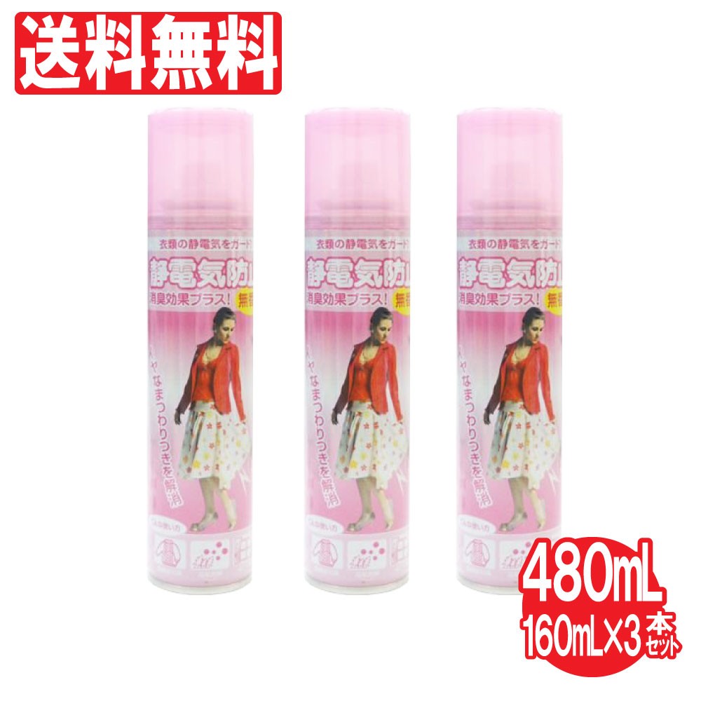 衣類の静電気防止スプレー 3本セット 480ml 160ml×3本 衣類 スプレー 静電気 ホコリ 花粉 無香料 送料無料