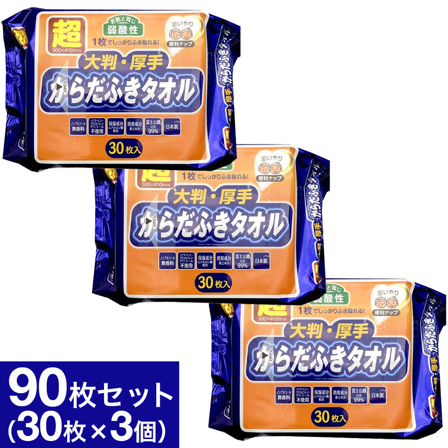 体拭きシート 超大判 超厚手 30枚入×3個セット 計90枚 からだふき 大判 ウエットティッシュ ぬれタオル 介護用品 防災グッズ ボディタオル 使い捨てタオル 爆買