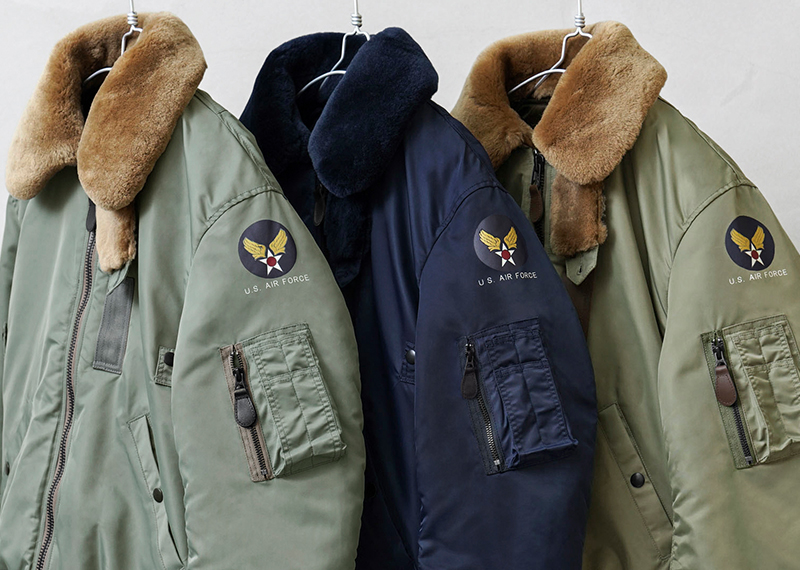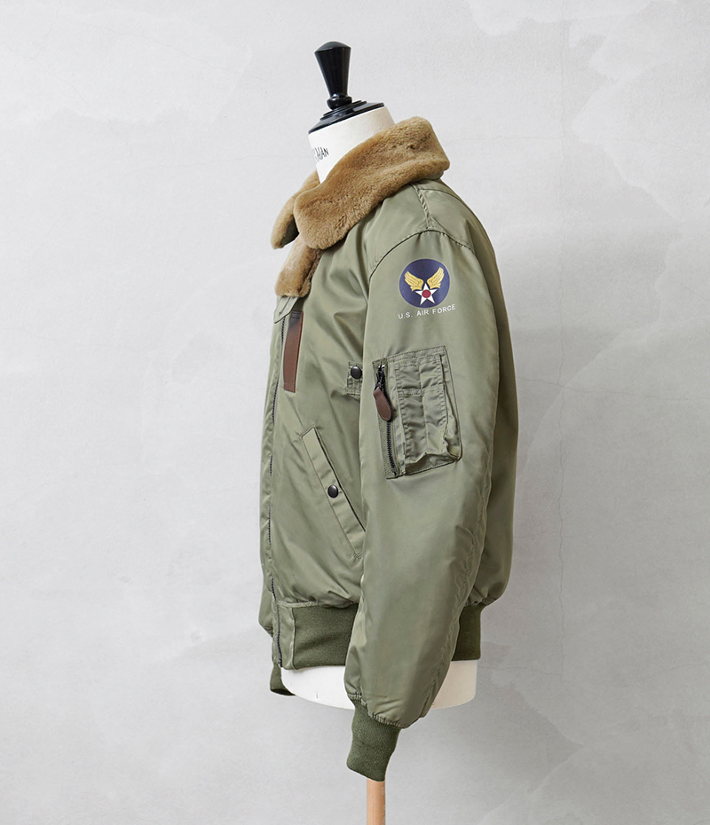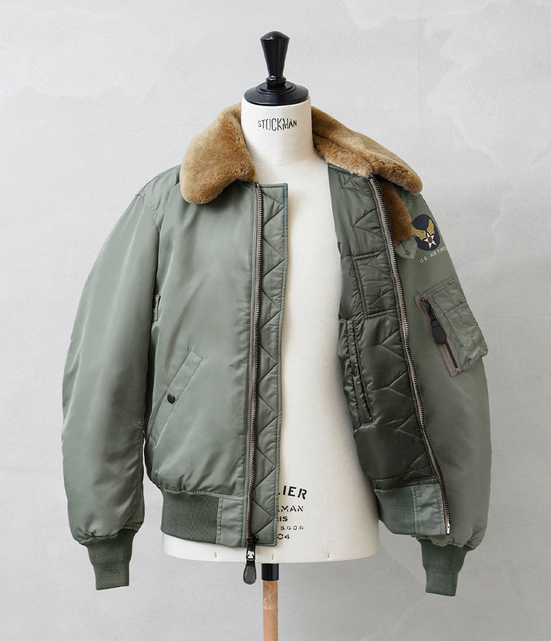 | 商品説明 | HOUSTON ヒューストン 米軍 B-15B//D型 フライトジャケットのご紹介です。 品名:B-15B//D FLIGHT JKT 品番:5001/5002/5003C B-15フライトジャケットはコットン製のボマージャケット「B-10」をベースに開発され、1940年代にアメリカ空軍によって制式採用されました。心地よい重みと光沢感のあるHEAVY NYLON TWILL素材を使用したボディと、大きめのムートンボアの襟が配置されており、チンストラップで留めることによって首周りの防寒性を高めます。 胸元に配置された酸素マスク固定用タブ(オキシジェンホースタブ)、両腕の付け根付近にはICS(インターコムシステム=通信機)のコードを通すためのコードループを配置することによって細かいディテールまで忠実に再現されています。また、左袖のユーティリティポケットの上や、タグ付近には「U.S.AIR FORCE」マークがありデザイン的な魅力が詰まっているのもポイントです。 ライニングには保温性のある中綿を詰め、袖口や裾はリブ仕様になっており、袖口のみ2段リブにすることによってより風の侵入を防ぎ防寒性を高めています。 近代的フライトジャケットの代表格「MA-1」の原型にもなった名作中の名作。シンプルながらも無骨な雰囲気を感じるデザインなので、ミリタリーパンツはもちろん、ジーンズやチノパンなど幅広いコーディネートに馴染む一着です。 | |||||||||||||||||||||||||||||||||||