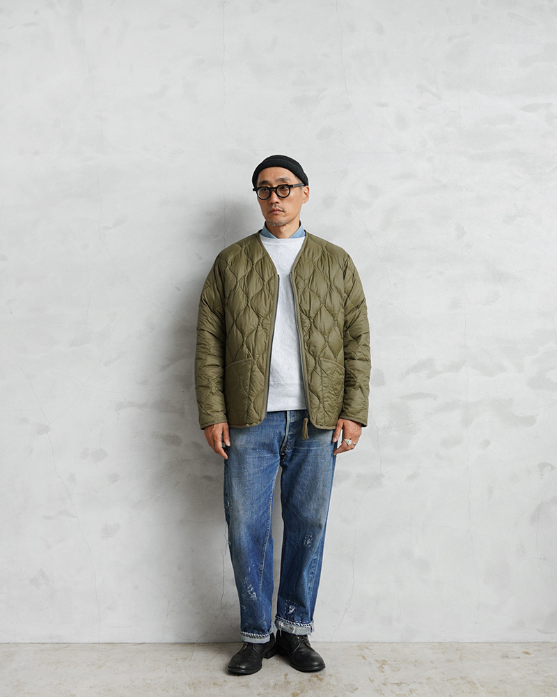 | 商品説明 | TAION タイオン JAPAN SPECIAL リバーシブル ベトジャン ダウンジャケット のご紹介です。 品番:TAION-JK03JS カテゴリーや商品用途に合った最適な生地を採用し、様々なインナーダウン商品を展開するTAIONから、ヴィンテージ感や刺繍を活かした、ベトジャン風リバーシブルダウンジャケットが登場。 JAPAN SPECIAL(JPNSP)は、様々なデザイナーと創り上げる、 TAIONの中でもデザイン性が高く、独自性のあるアイテムを展開するラインです。 軽くて弾力のある800フィルパワーのダウンを使用。一般で使用されるダウン(600フィルパワー前後)よりも軽くて、 暖かい空気をたくさん含むことができます。 フロントはダブルジッパー開閉、少しゆとりをもたせたシルエットで、すっきりしたVネックは、シャツやパーカーとの重ね着やマフラーとの相性も抜群。リラックス感と動きやすさを兼ね備え、アウターとしてもインナーダウンとしてももたつかず重宝します。 表側は印象的なベトジャン刺繍を拝したデザイン、裏側はヘチマキルトを配したダウンジャケット、気分やコーデに合わせて楽しめるリバーシブル仕様。少し個性的なデザインと、日常で使える実用性を両立した、ダウンウェアはカジュアルだけどどこか高級感があり、アウトドアからシティユースまでデイリーに活躍する一着です。 FP(フィルパワー)とは フィルパワーとは羽毛のかさ高性を示す単位で、1オンス(約28g)の羽毛をシリンダーに入れて、ある一定の荷重を掛けた時の膨らみを立法インチ(2.54cm立法)で示したものです。例えば800フィルパワーは、1オンスの羽毛が800立法インチの体積に膨らんでいることになります。 フィルパワーが大きいダウンは大量に空気を含むことができます。含まれた空気が熱伝導率を低くしてくれるため、断熱効果が高く保温性に優れています。一般的に600flpを超えるダウンは良質とされ、同じ重さでも保温効果の高さが期待できるため、軽くて暖かいダウンを作ることができます。 | ||||||||||||||||||||||||||||||