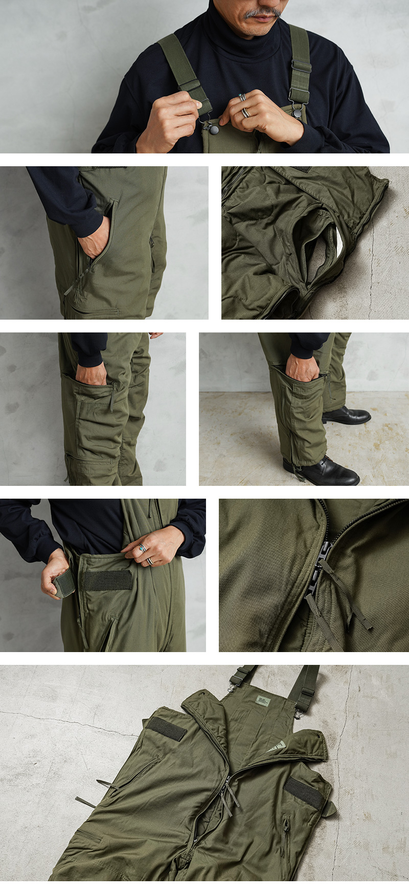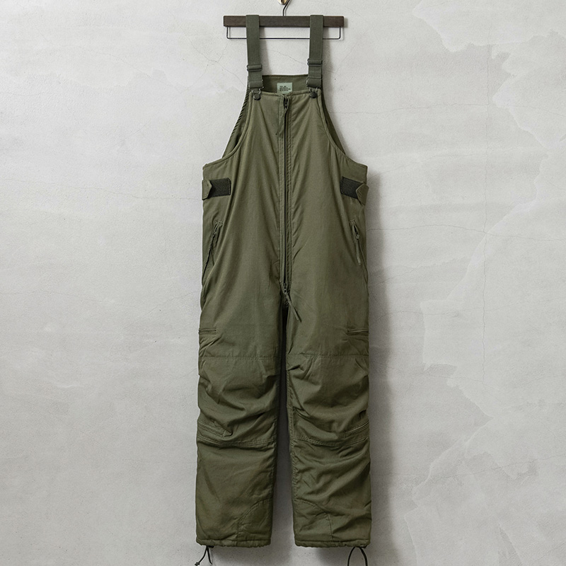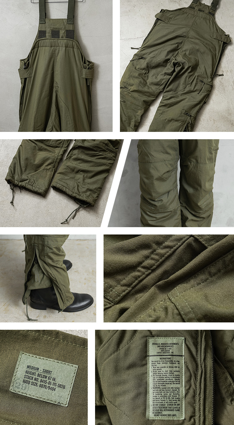 | 商品説明 | 実物 新品 デッドストック 米軍 CVC CREWMAN’S NOMEX オーバーオールのご紹介です。 制式名称:OVERALLS,MOUNTED CREWMEN’S AND AIRCREWMEN’S 世界的に見ても放出される機会がほとんど無くなった希少なCVC CREWMAN’S NOMEX オーバーオールが少量のみですが数年ぶりに入荷しました! CVC(Combat Vehicle Crewman / 戦闘車両乗務員)などのタンカースやパイロット、エアクルー用の、アラミド系難燃素材で出来たオーバーオールで、高価なNOMEX(ノーメックス)等に代表されるARAMID(アラミド)を100%使用しています。ARAMIDは、可燃性が低く、優れた強度と耐熱性を持ち合わせています。洗濯やタンブラー乾燥を行ってもその機能性を永久に維持します。 内側にもARAMIDを使用したキルティング仕様になっており、中綿入りなので防寒性にも非常に優れています。背面に設けられたベルクロ留めの開口部を開き、40cm程開閉するサイドジッパーを開けることで脱がずにトイレに行けるユニークなデザインです。ウエスト部分もベルクロで調節可能です。 フロントはダブルジップで大きく開閉し、調節可能なショルダーストラップはゴム製で伸縮します。ウエスト部分のポケットは通常のポケットとインナーにアクセスできる貫通ポケットの2通りで使用できます。サイドポケットと裾部分にもブラスジッパー開閉のポケットが備わっています。裾はジッパーで開閉可能でドローコード付きなので調節することも可能です。 ワークウェアとしても最高の役目を果たしてくれますし、オーバーオールにジャケットを羽織るスタイルなどバイクやタウンユースにも非常におすすめです。 年々希少価値が上がっており、入手することが非常に困難になったアイテムの1つです! | ||||||||||||||||||||