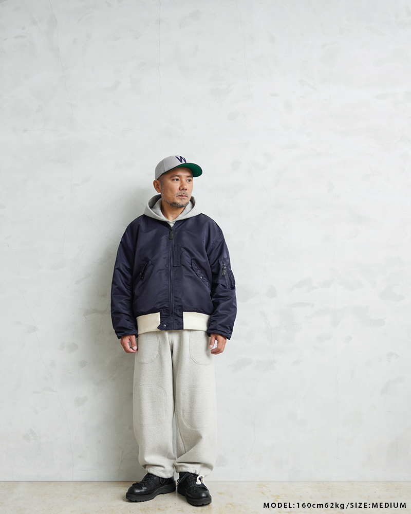 | 商品説明 | WAIPER.inc 米軍 U.S. NAVY ダブルニー スウェットパンツ のご紹介です。 品番:WP1032 40年代の米海軍のスウェットパンツをベースに、WAIPERならではのアレンジを加えたスウェットパンツを製作しました。 兵士がトレーニング時に着用するスウェットスーツとしてヴィンテージ市場でも大変貴重なアイテム。 特にスウェットパンツは太めのストレートで独特なシルエットが魅力ながらも、ヴィンテージはお世辞にも着心地が良いとは言えませんでした。 WAIPER.INCは特徴的な裾にかけてのシルエットは維持しつつ、ウエストやヒップ周りのパターンをアレンジ。スウェットパンツとして快適な履き心地を実現。 また、ヴィンテージにはないポケットを前後に追加することで、パンツとしての機能性も高めています。 素材について、本来は裏起毛の生地が使用される中、WAIPER.INCでは裏毛のパイル素材に変更。 当店の人気アイテムでもある88/12の生産を手掛ける「ナイガイテキスタイル」で紡績された糸を使用しています。肌ざわりのよい裏毛素材は着用期間も長く愛用いただけると思います。 裾のドローコードは太めのスピンドルを再現。ストンと落ちたシルエットは当然ながら、裾をしぼることでまた違ったシルエットを楽しめます。 こだわりのアレンジとヴィンテージへのリスペクトを兼ね備えたこだわりの一本をご堪能ください。 | ||||||||||||||||||||||||||||||||||||||||||