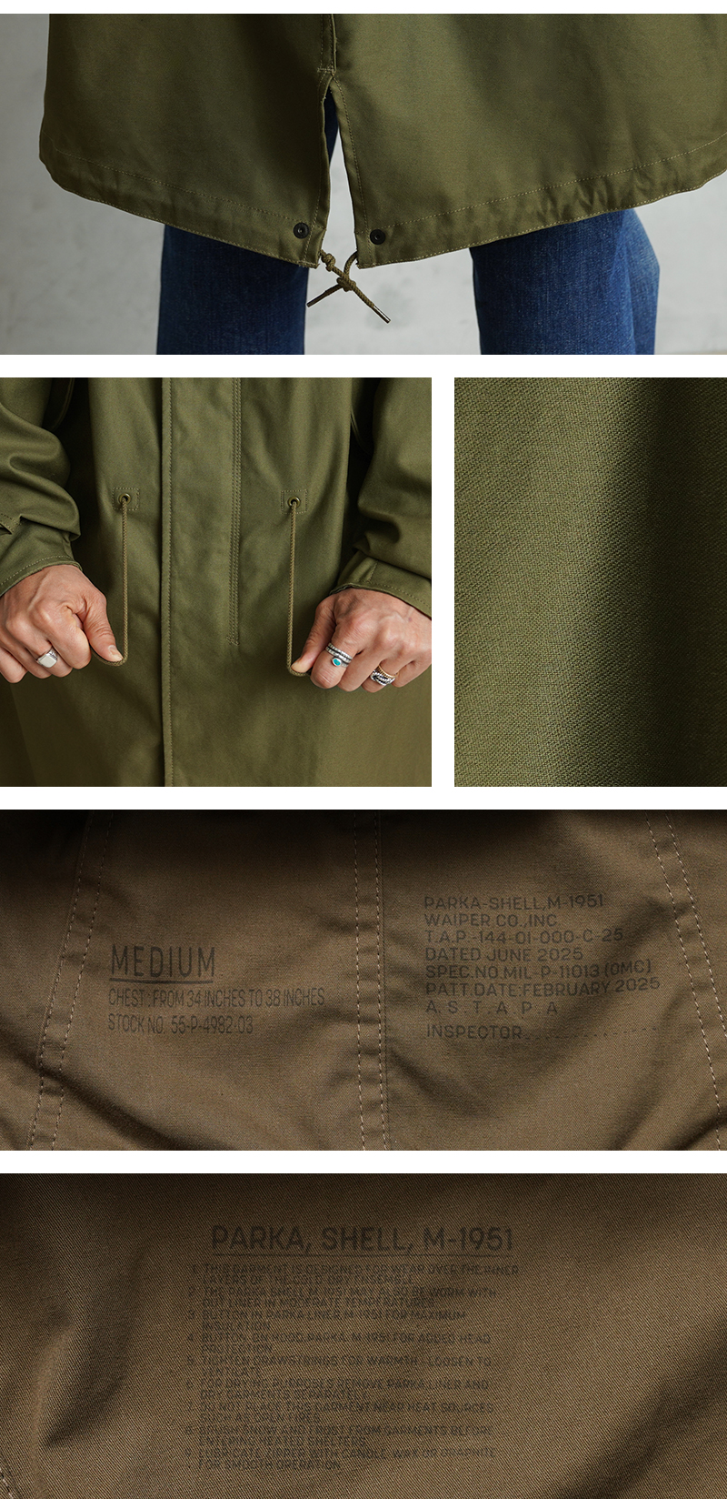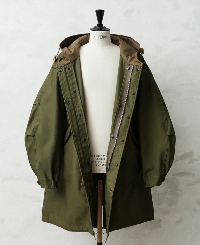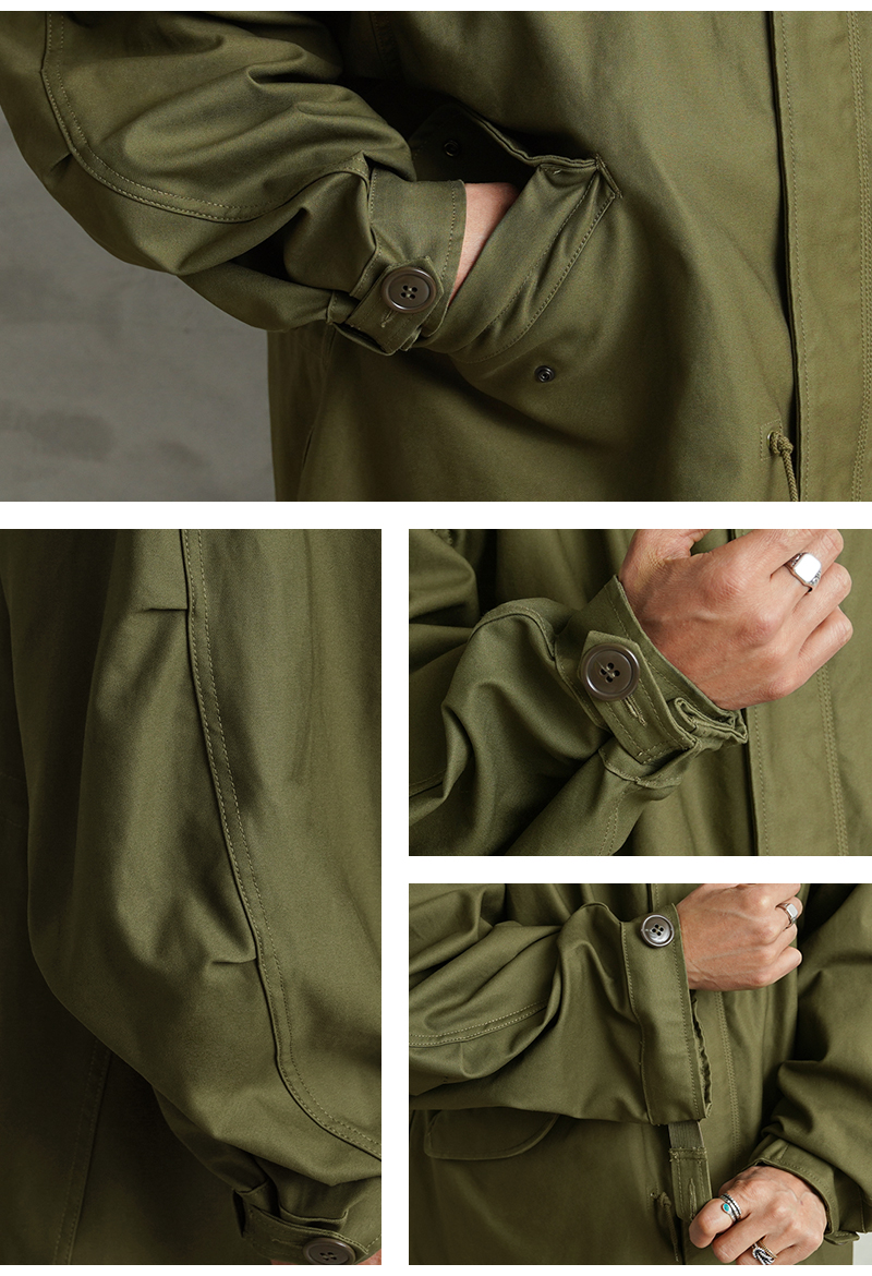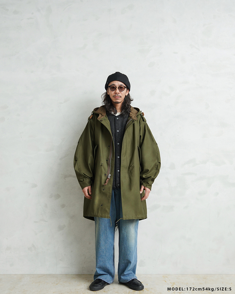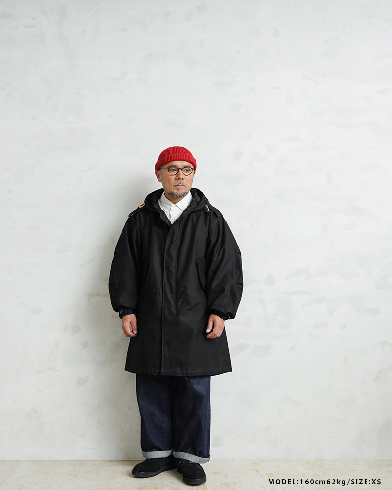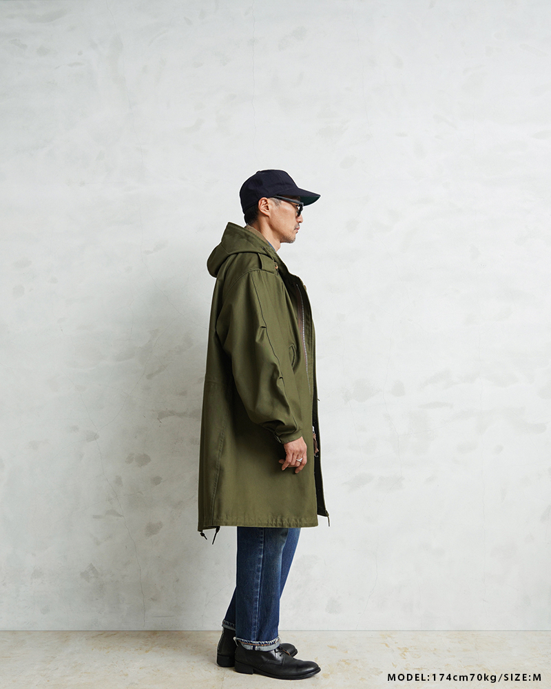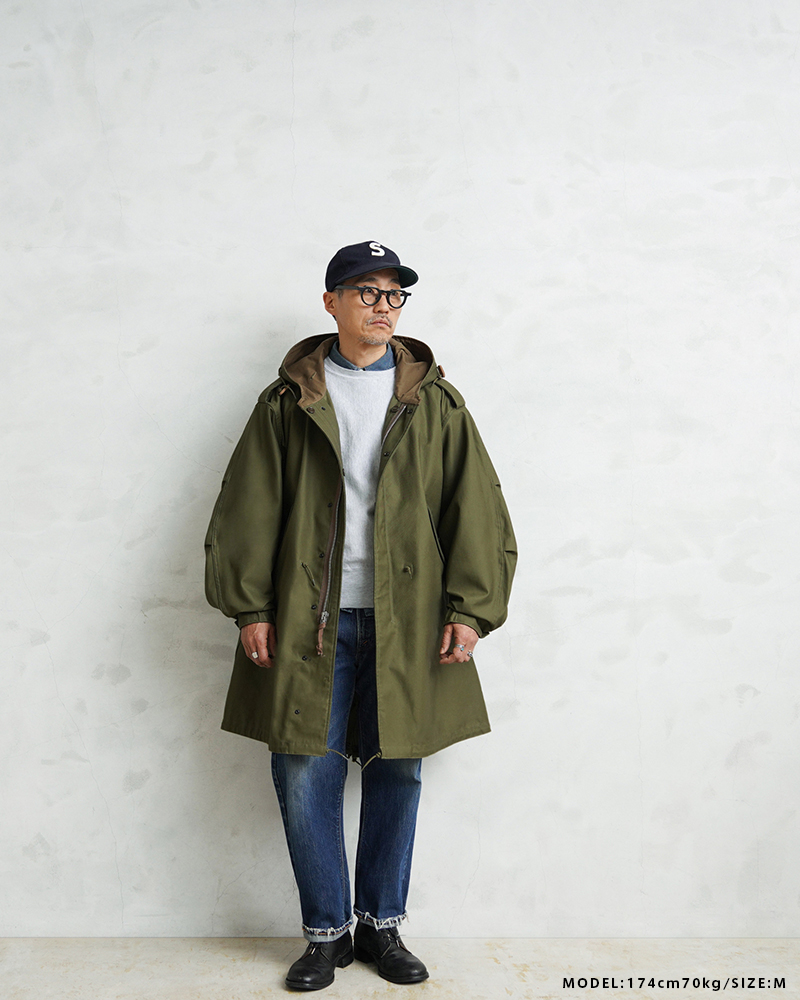 | 商品説明 | WAIPER.inc 米軍 初期型 M-51 フィッシュテールパーカー コットンサテンモデル モッズコート のご紹介です。 品名:PARKA SHELL, M-1951 品番:WP1159 現代におけるミリタリーコートの代名詞とも言える、米軍M-51パーカー。 カーゴパンツの代表格として知られるM-51フィールドカーゴパンツと並び、現在でも完成度の高さが評価され続ける名作です。 近年では実物放出も減少し、状態の良い個体は入手が難しくなりました。 本製品は希少なヴィンテージをベースに、ディテール、素材感にこだわり製作しました。 1950年代、朝鮮戦争下で採用されたM-51シリーズは、フィールドジャケットやトラウザーズなどを含む一連の寒冷地装備として開発されました。過酷な環境での使用を前提とし、着脱式ライナーを装着できる構造が大きな特徴となっています。 今回製作したモデルは、M-51フィッシュテールパーカーの中でも肉厚のコットンサテンを採用した初期型を再現。 オリジナルで織り上げたコットン100%の生地は、ハリとコシを持ちながら着用と洗濯を繰り返すことで柔らかくなり、ヴィンテージのような表情へと変化していきます。 重量感のある生地が生む立体的なシルエットも魅力です。 フード裏には当時と同様の別布仕様を再現。 OLIVE DRABカラーでは裏地やジッパーの色差まで細部にこだわり、ヴィンテージの雰囲気を丁寧に再構築しました。 さらにWAIPER.incのアレンジとして、M-65モッズコート用ライナーを装着できるようボタン位置を調整。 入手性の高いライナーを使用可能にすることで、防寒性と実用性を現代仕様へアップデートしています。 秋口から厳冬期まで幅広く着用できる仕様です。 カラーは定番のOLIVE DRABに加え、現代のスタイリングに馴染むBLACKを展開。 1960年代のモッズカルチャーを通じて、ミリタリーウェアがファッションへと受け継がれていく象徴的な一着。 その中でも希少な初期型を基に、日常で着られる形へ落とし込んだWAIPER.inc渾身のリプロダクトです。 | ||||||||||||||||||||||||||||||||||||