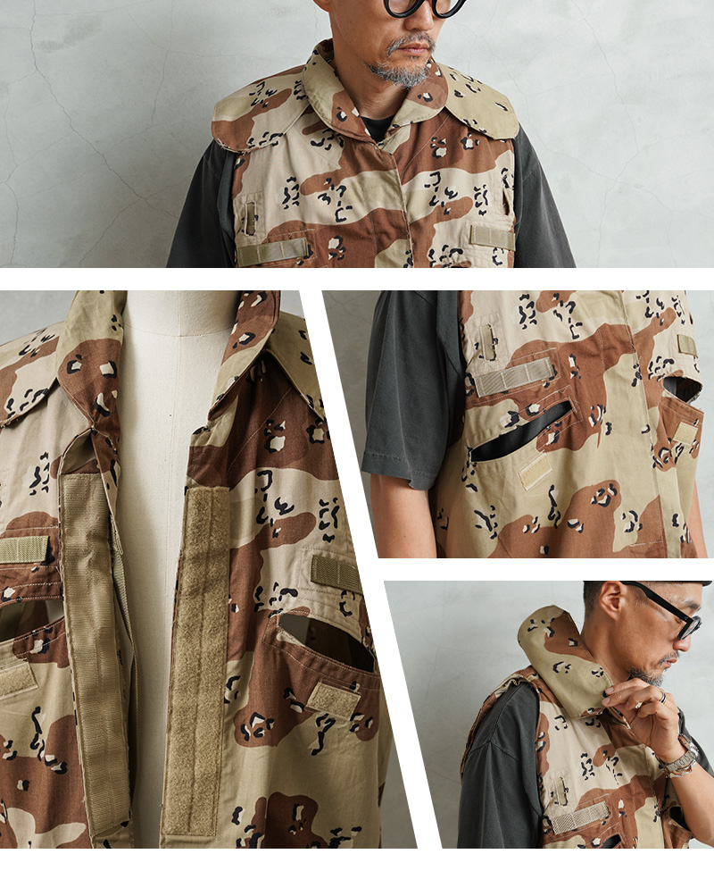 | 商品説明 | 実物 新品 デッドストック 米軍 PASGT ボディアーマーベストカバー 6Cデザート(チョコチップ)カモのご紹介です。 制式名称:COVER,PASGT VEST,CAMOUFLAGE PATTERN:DESERT. 米軍で採用されていたボディアーマー、PASGTベストに被せて使用するカバーです。本来はウッドランドカモのPASGTベストに、砂漠での迷彩効果を付与するために開発されました。 PASGTとは「Personnel Armor System for Ground Troops」の略称で、「地上部隊向け個人防護システム」を意味しています。82年ごろに採用された本システムは、拳銃弾と砲弾の破片を阻止する事が可能なベストおよびヘルメットで構成されており、ベストに関しては米軍だけでなく航空自衛隊でも採用されていました。 初期のベストカバーではこの6Cデザート(チョコチップ)カモが採用されていましたが、米カリフォルニア州モハーヴェ砂漠の色味をモデルに開発されていたために中東の砂漠には馴染まず、その後は3カラーデザートカモのタイプに変更されていきました。 素材には丈夫なコットン・ナイロンの混紡素材が使用。ミリタリーならではの実用性と無骨さがコーデのポイントとして活躍するオススメアイテムです! | |||||||||||||||||