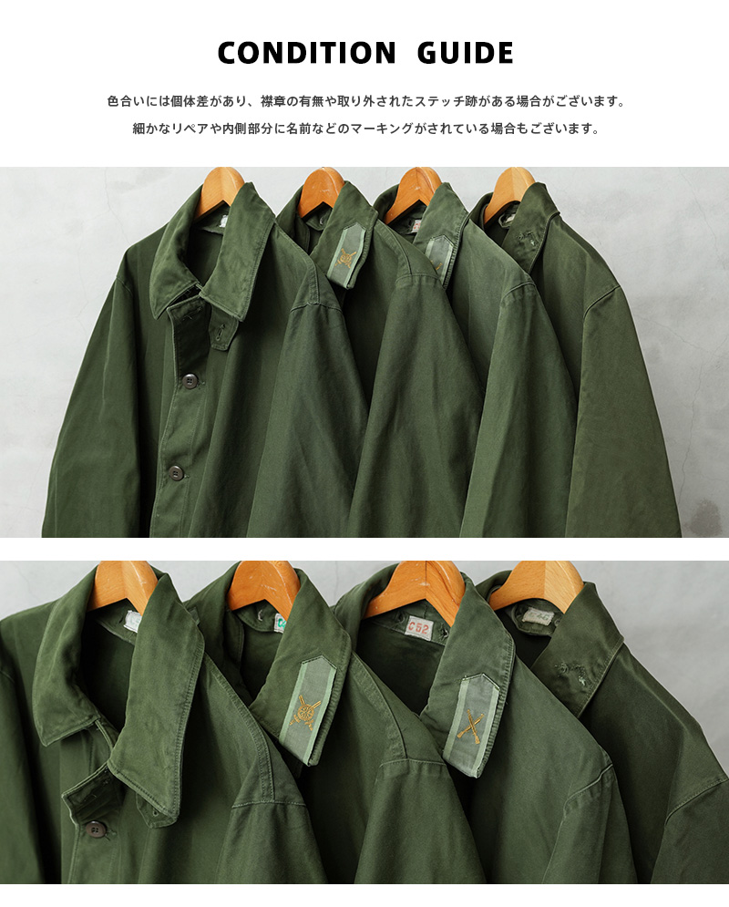 | 商品状態 | 軍放出のUSED ※色合いには個体差があり、襟章の有無や取り外されたステッチ跡がある場合がございます。細かなリペアや内側部分に名前などのマーキングがされている場合もございます。商品の状態についてご指定いただくことは出来ませんので予めご了承ください。 | |||||||||||||||||||||||||||||||||||||||||||||||||||||||||||||||||||||||||||||||||||||||||||||||