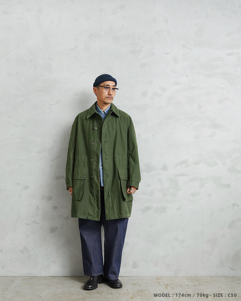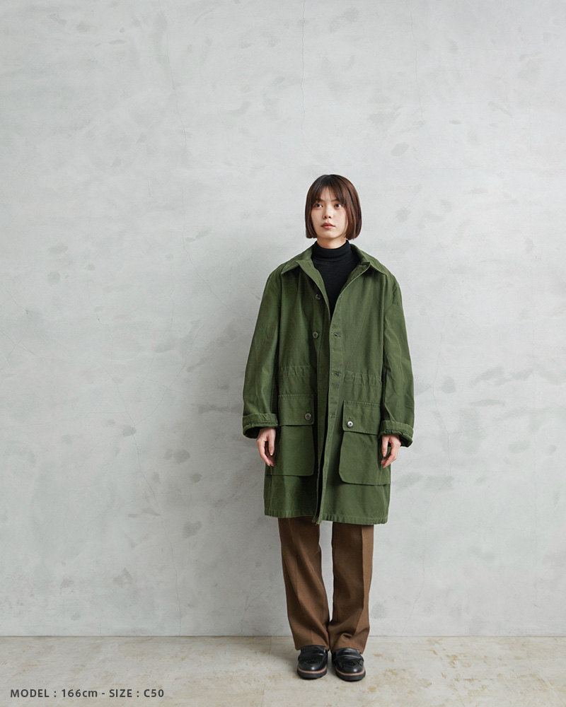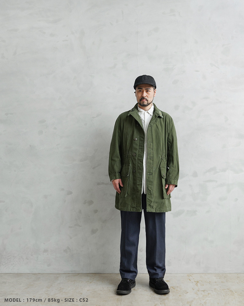 | 商品説明 | 実物 USED スウェーデン軍 M-59 フィールドコートのご紹介です。 近年、ユーロミリタリーの中でも確固たる地位を築きつつあるスウェーデン軍アイテム。数ある洗練されたデザインの中でも、象徴的な存在として挙げられるM-59フィールドジャケットです。 今回ご紹介するM-59は、M-90の原型とも言える存在で、主に1960年代から80年代にかけて採用されていたフィールドコートです。実用性とデザイン性を兼ね備えた、まさにスウェーデン軍を代表する名品です。 スウェーデン軍らしく、無駄の無いミニマルなデザインで、ベーシックなステンカラータイプでありながらも、フロントのフラップ付きの大きなポケットに存在感があります。 ゆったりとした身幅から生まれる美しいAラインシルエットは、現代的なバランスにも通じるものがあります。しかし、それは単なるオーバーサイズではなく、ライナー装着を前提とした設計や可動域を確保するための合理的なパターンによるもの。実用性を追求した結果として完成されたフォルムです。 求められる生地の耐久性や縫製の頑丈さ、それらの要素が一体となり実現するAラインには必然的に機能美が宿っています。放出数は依然として限られており、ユーロミリタリーの中でも年々評価が高まっています。 今後さらに入手が難しくなる可能性も高く、今のうちに押さえておいた方が良いアイテムだと思います! | |||||||||||||||||||||||||||||||||||||||||||||||||||||||||||||||||||||||||||||||||||||||||||||||
