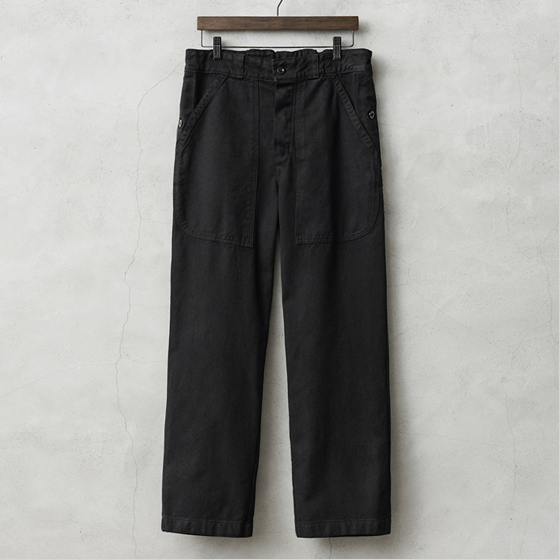長い期間着用が続けられていたということで、タフな印象を裏付けるスイス軍を代表する一本。クラシカルなディテールに独特な色合い、ゆったりとした太もも周りから裾にかけてやや細くなるキレイなテーパードシルエットは、様々なコーデにマッチするアイテムです。