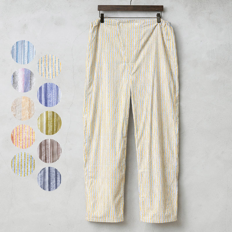 本来のナイトウェアとしてゆったりと着れるよう、ウエストはゴム仕様にボタン開閉なのでストレスフリーな穿き心地です。