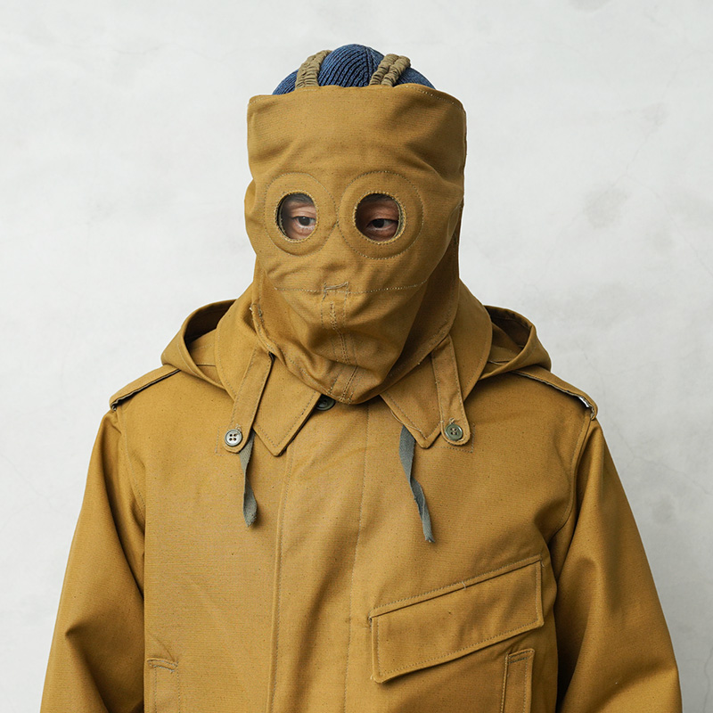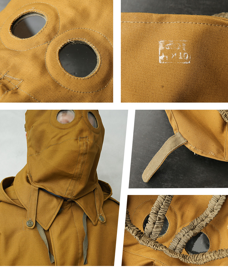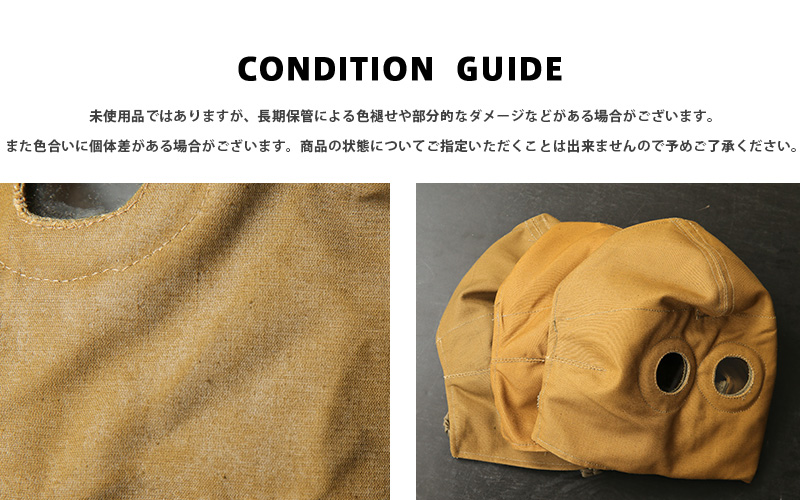 | 商品説明 | 実物 新品 デッドストック ロシア軍(旧ソ連軍)タンカース マスク カーキ のご紹介です。 ソ連(ソビエト社会主義共和国連邦)の崩壊前に採用されていた希少なタンカースジャケットなどとセットで使用されていたマスクです。 通称タンクマンスーツと呼ばれたタンカースジャケットは、戦車兵と共にカチューシャなどのロケット、ミサイル部隊にも使われた、非常に完成度の高い装備で、長期間運用されました。 寒冷地の戦車部隊のためのマスクで、防寒性に優れた目の詰まった高密度の難燃性コットン生地を採用。 マスクの目は耐熱の厚いガラスになっています。 旧共産国特有の武骨でありながらどこか愛嬌のあるデザインと、使い込むほどにエイジングの良さが出てくる上質な素材。ジャケットやグローブと一緒にフルセットでのコレクションや、お店のディスプレーとしても雰囲気のあるインテリアが完成します。 布製ですので、収納場所にも困りません。 年月を追うごとに希少になる、コレクションには欠かせないアイテムです。 |