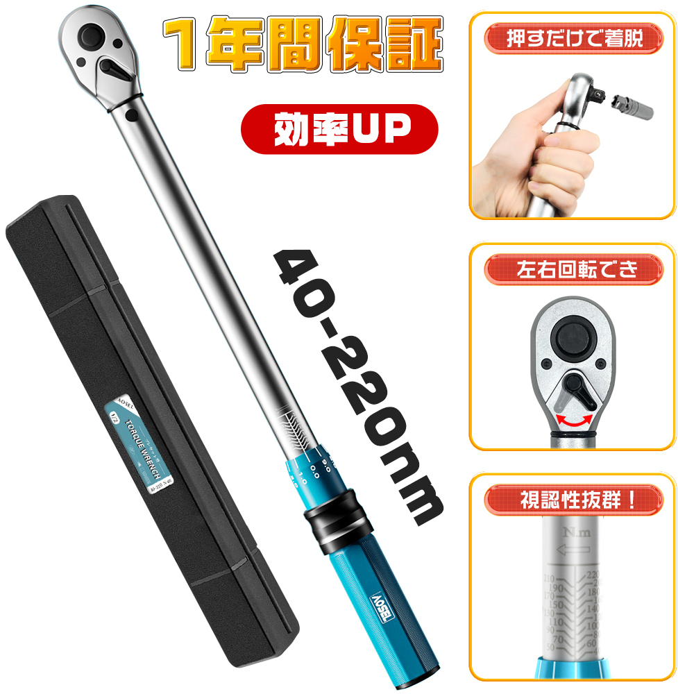 即納!トルクレンチ プレセット型 差込角12.7mm(1/2インチ) 40-220N・m 自動車 タイヤ交換 バイク用 収納ケース付き 校正証明書・1年保証 送料無料
