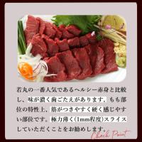 ★若丸の一番人気であるヘルシー赤身と比較し、味が濃く歯ごたえがあります。少し硬い部位となりますので、薄くスライスしていただくことをお勧めします。