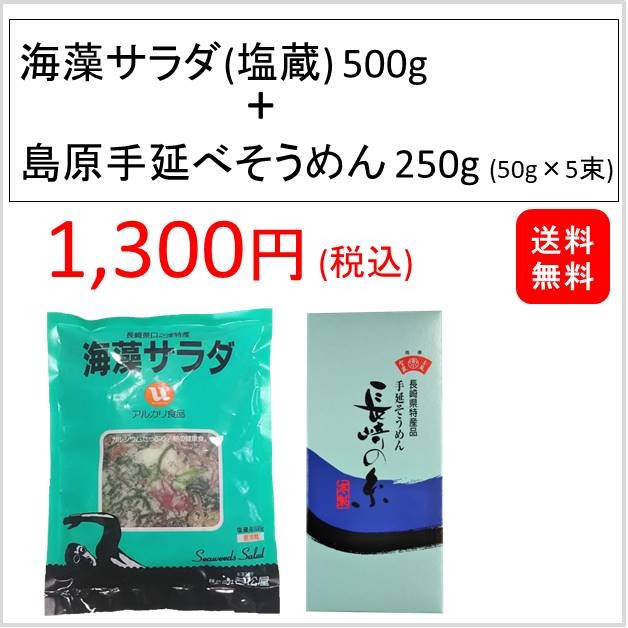 海藻サラダ (塩蔵) 500g + 島原手延べそうめん250g(50g×5束)