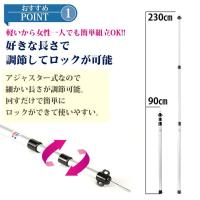 3つのシャフトを重ねた3継無断階調節式を採用。高さは89〜230cmの間でお好みの高さに設定できます。また収納時もコンパクトに収まるので持ち運びラクラク!