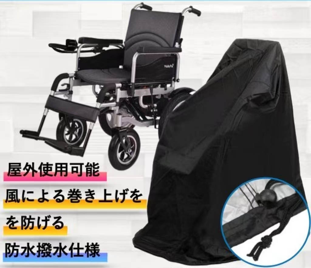 車椅子を屋外保管する際に日差し、雨、雪、砂埃、風などから車椅子をガード。