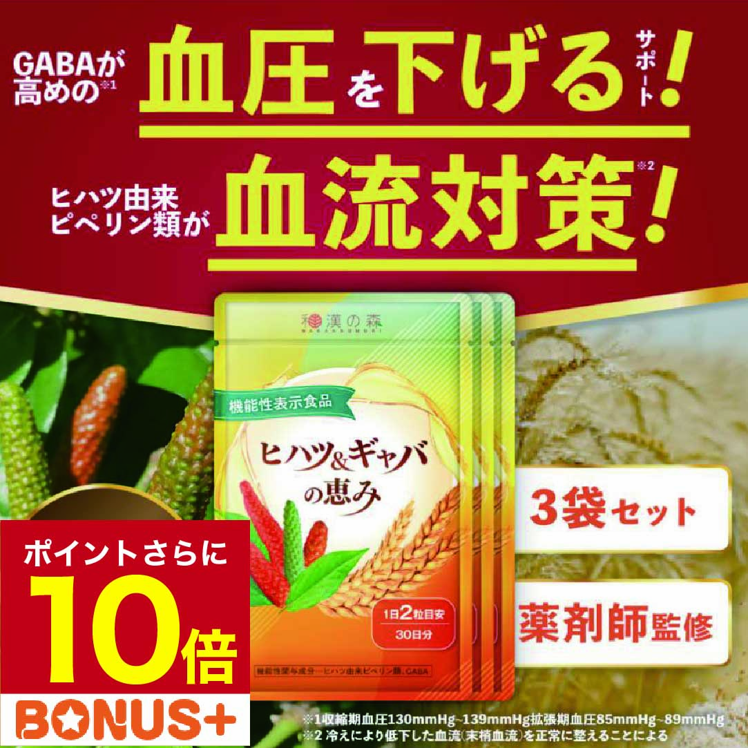 【薬剤師監修】血圧 サプリ ヒハツ ギャバ 下げる 血流 冷え むくみ 血圧サプリ 睡眠 ストレス 目覚め 高めの血圧 ヒハツ&ギャバの恵み 和漢の森 3袋