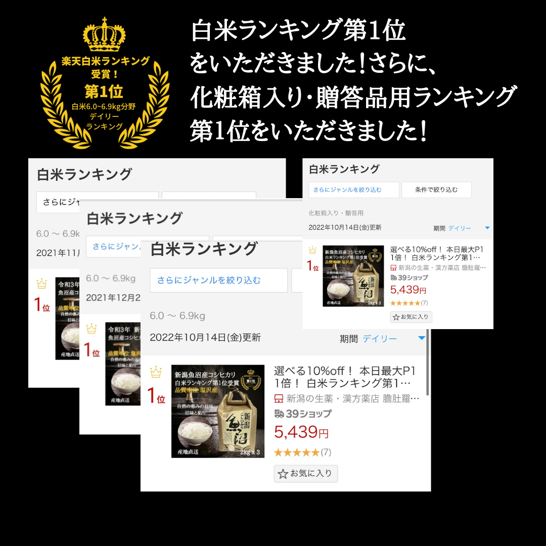 楽天白米ランキング第1位受賞!
