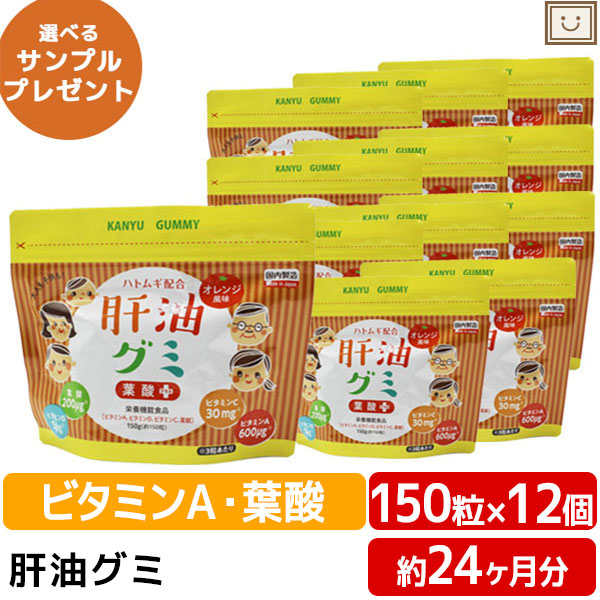 送料無料 肝油グミ 葉酸プラス ドロップ オレンジ風味 150粒 12個セット ハトムギ 肝油ドロップ 和漢 国産 子供 目 サプリ ビタミンd ビタミンc
