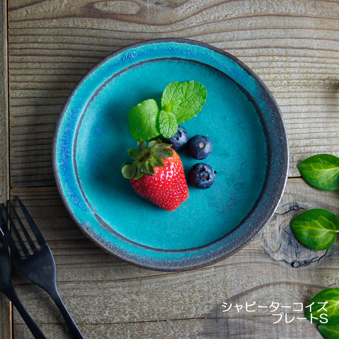 シャビーターコイズ プレート(S) 益子焼 丸皿 ターコイズブルー 取り皿 デザート皿 小皿 ブルー ギフト お家カフェ