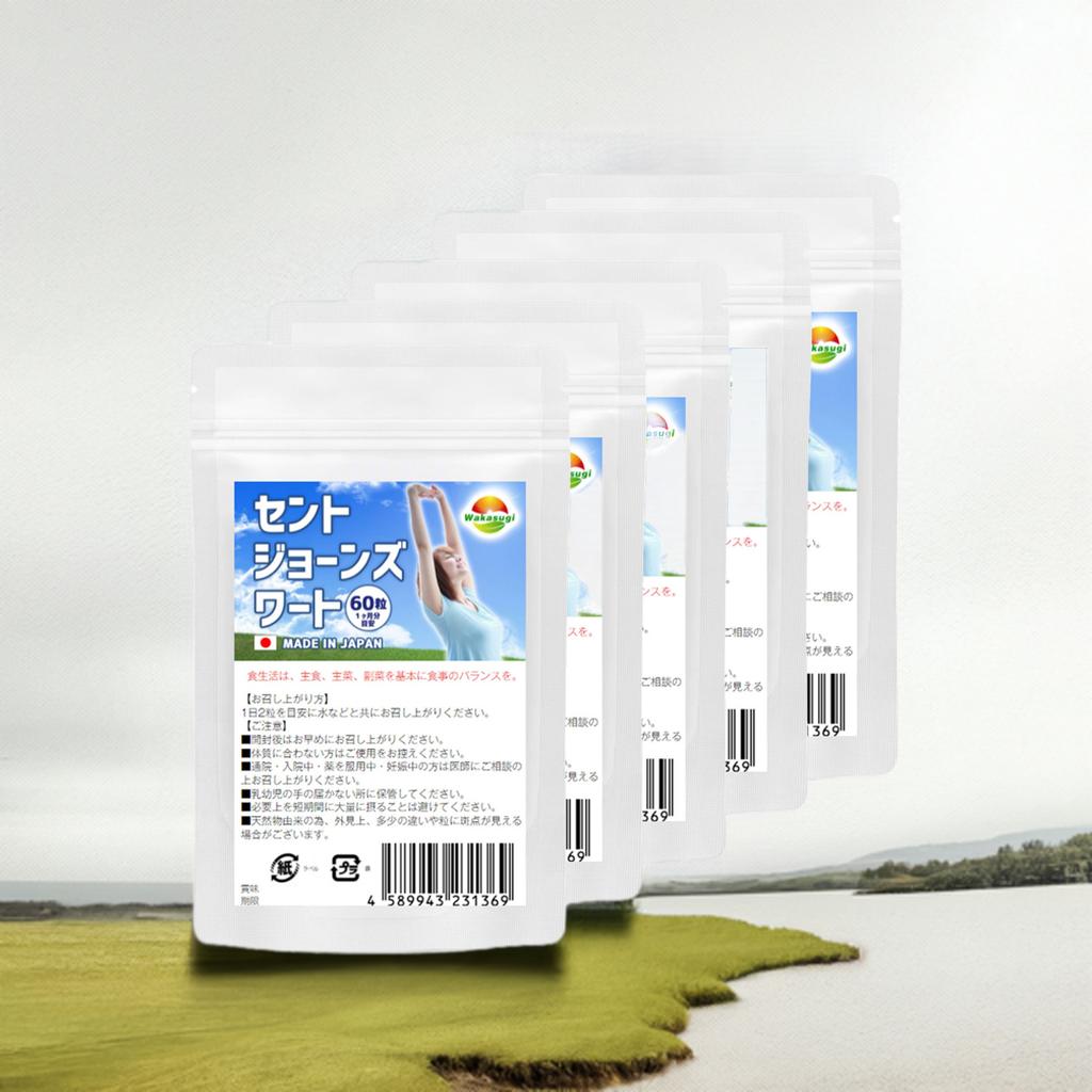 セントジョーンズワート 60粒 5袋セット計300粒 約5か月分 GABA配合 セイヨウオトギリソウ サンシャインハーブ ハッピーハーブ