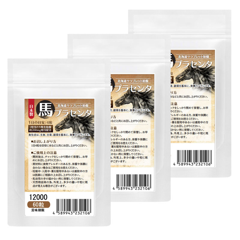 原材料名:ウマプラセンタエキス末(国内製造)、/結晶セルロース、ステアリン酸カルシウム、微粒二酸化ケイ素