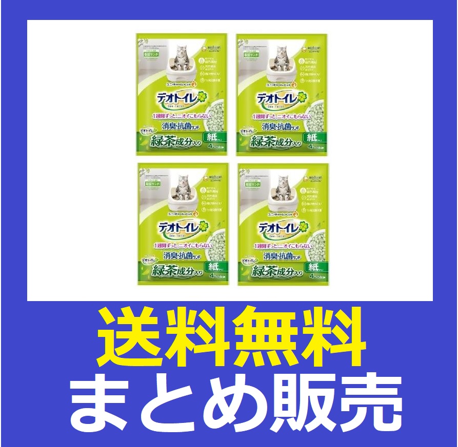 (まとめ販売)「デオトイレ 緑茶 猫砂 飛び散らない緑茶成分入り 消臭サンド 4L ユニ・チャーム」 4個の詰合せ