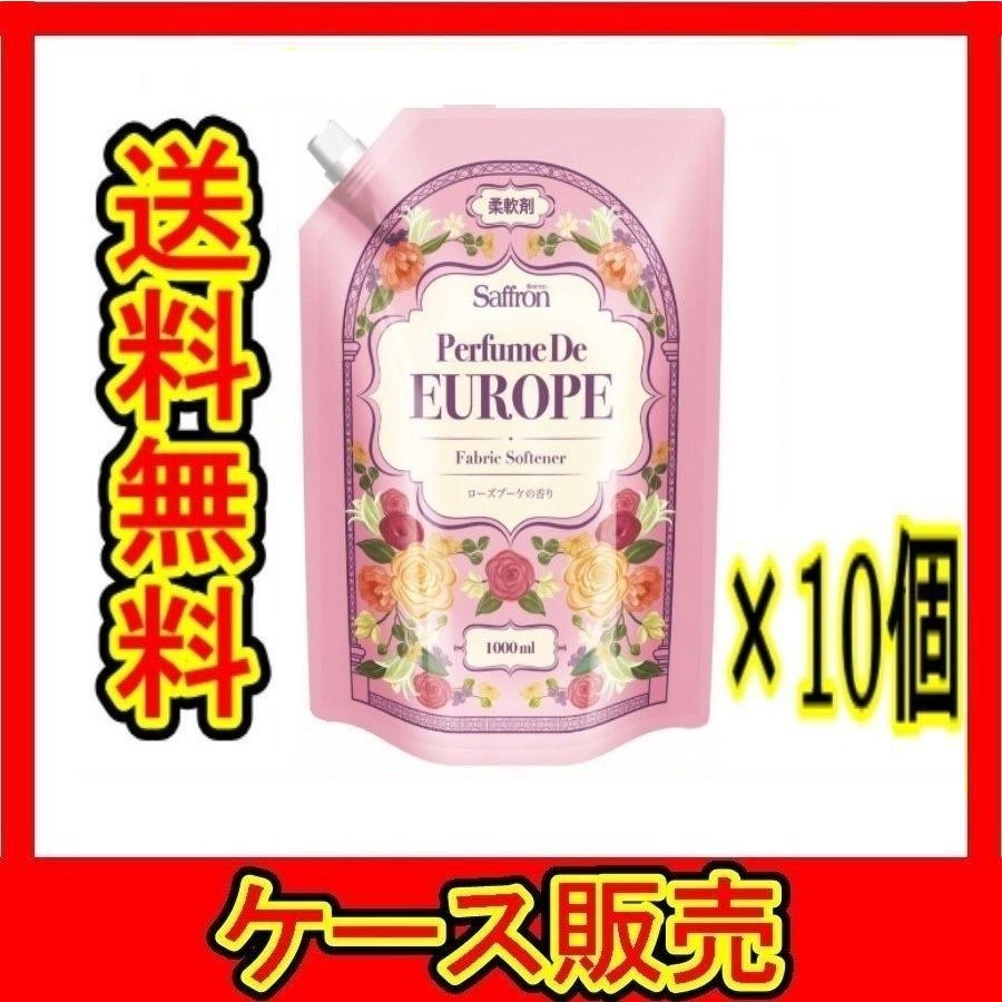 (ケース販売) 「香りサフロン 柔軟剤 パフュームドヨーロッパ ローズブーケの香り 大容量 1000ml」 10個の詰合せ
