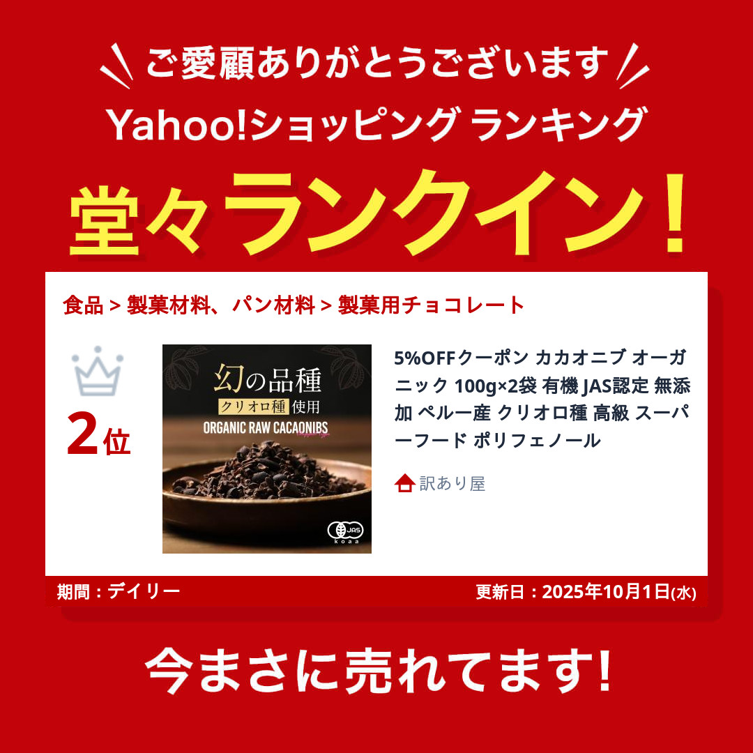 カカオニブ オーガニック 100g×2袋 有機JAS認定 無添加 ペルー産 クリオロ種 スーパーフード ポイント消化