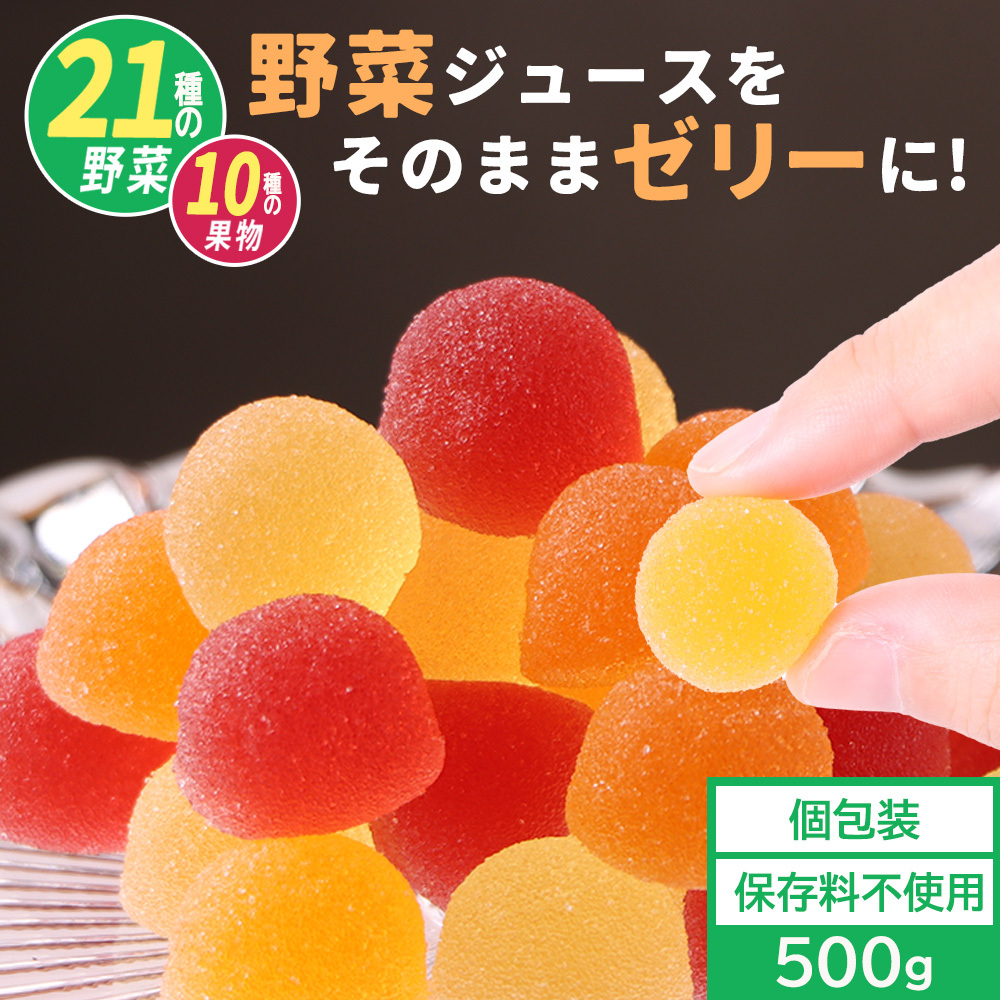 野菜毎日ゼリー(黄):砂糖(国内製造)、水飴、ぶどう糖、野菜・果実濃縮飲料(野菜(人参、キャベツ、なす、アスパラガス、セロリ、白菜、大根、ケール、レタス、クレソン、ほうれん草、パセリ、ビート、南瓜)、果実(りんご、マンゴー、レモン、パッションフルーツ、バナナ、アセロラ)/香料、ビタミンC、クエン酸)/糊料(ペクチン)、酸味料