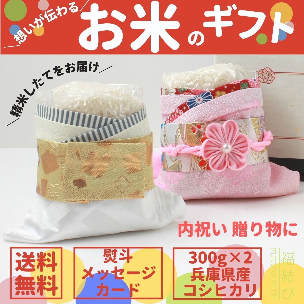 結婚内祝い お返し お米 ギフト おしゃれ 親戚 福結び結 type3