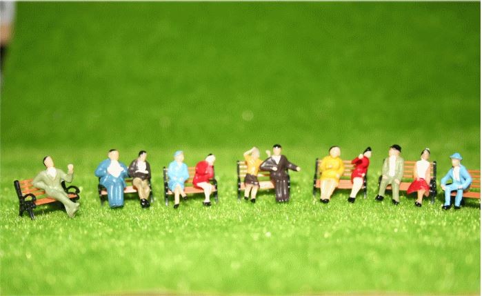 バラエティ豊富なHOゲージ向けフィギュア リアルに再現!座っている人24人HOゲージの本場であるヨーロッパやアメリカ向けの商品として販売されているものです。色合いもきれいでレイアウトがにぎやかになること間違いなしです!! | 鉄道模型の人形・街灯・樹木専門店 わき役黒ちゃん