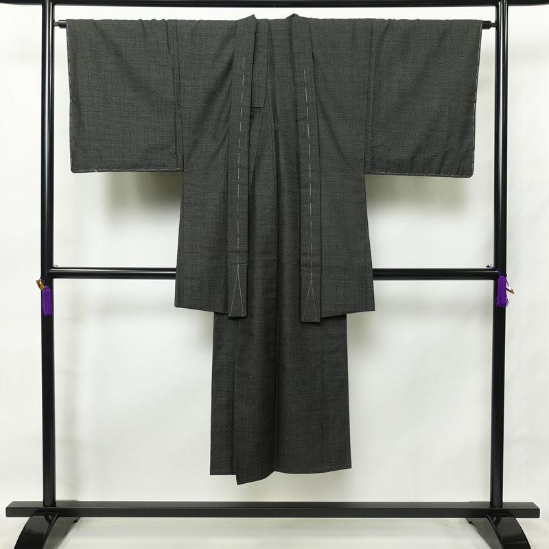 中古 男性用 着物 羽織 2点セット 良品 アンサンブル ウール 亀甲柄 単衣仕立て 身丈138cm 裄丈69cm 一部しつけ糸付き 着物と羽織セット 黒です。ざっくりとした手触りとなっております。この商品はリサイクル品となります。こちらはリユース品としては大変状態が良くお勧めのお品となっております。当店の商品をご覧いただきありがとうございます。