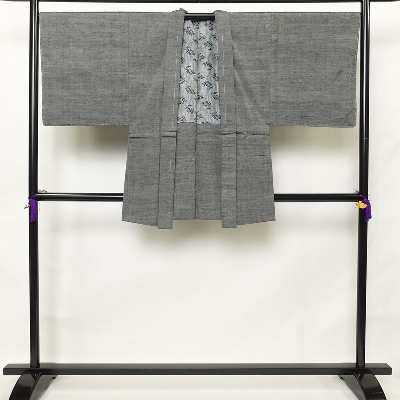 男性用 羽織 地織紬 紬 しつけ糸付き 身丈89cm 裄丈71.5cm 正絹 無地 袷仕立て グレー