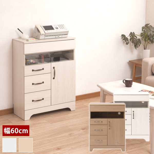 お洒落でコンパクトなのに収納力抜群のファックス台キャビネット。ガラス窓でデザイン性も兼ね、ディスプレイも楽しめる電話台。扉内にはルーターも収納でき、細々したものを綺麗に整頓。可愛らしいデザインと収納力で満足感たっぷり。一人暮らしなどコンパクトに使えるFAX台は木目の綺麗なホワイトとナチュラルの2色からお選び頂けます。シリーズで揃えればお部屋に統一感が生まれます。