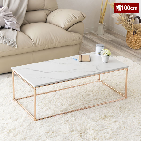 ■大理石柄×ピンクゴールド脚のリビングテーブル