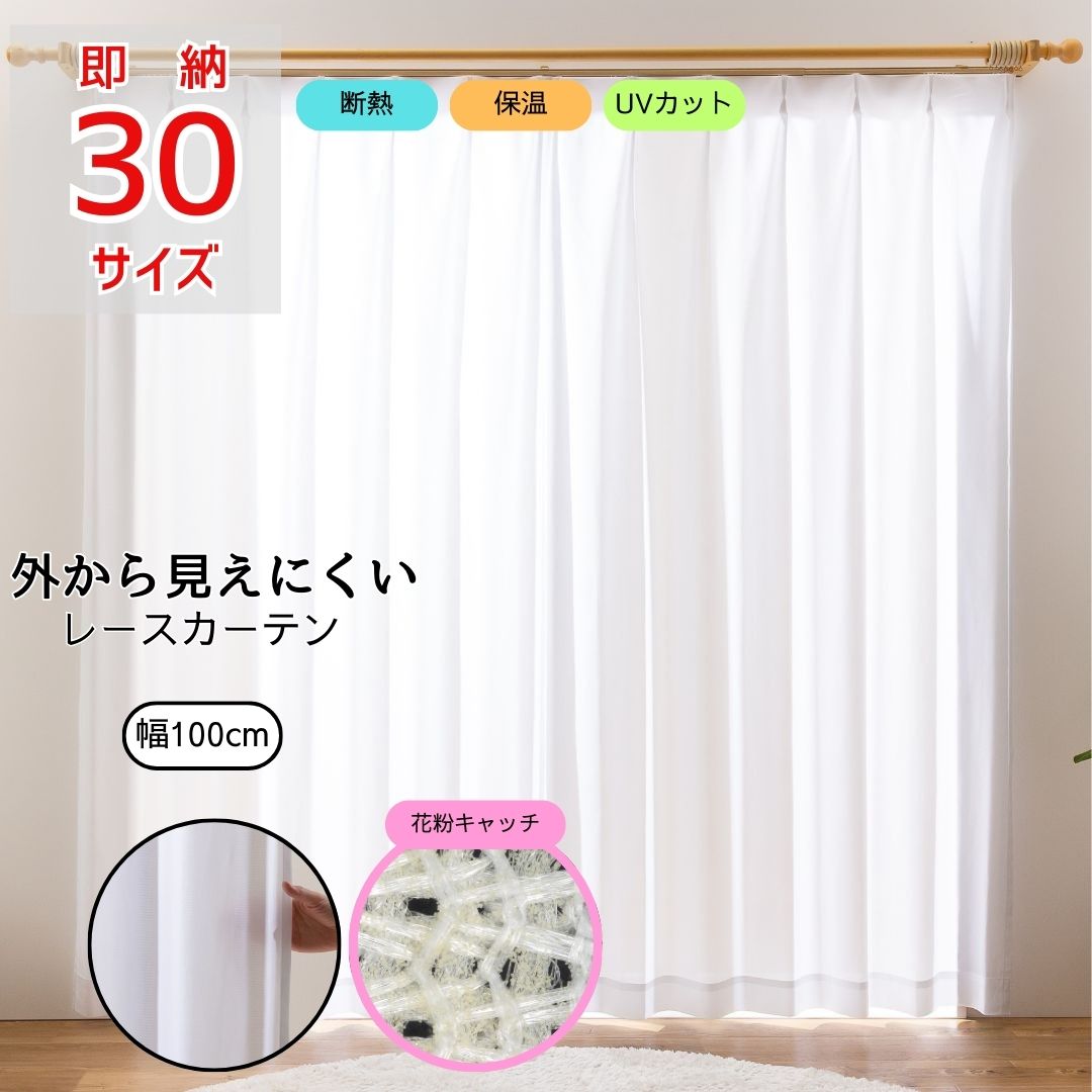 \得!P5倍/即納 幅100cm 花粉 ミラーレースカーテン省エネ 断熱 遮熱 遮光 UVカット 2枚入 丈133 176 183 188 208 213 218 228 238