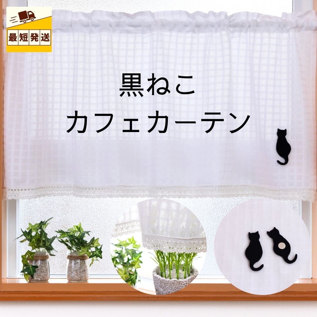 かわいい【くろねこ】をあしらった、人気のカフェカーテンです。